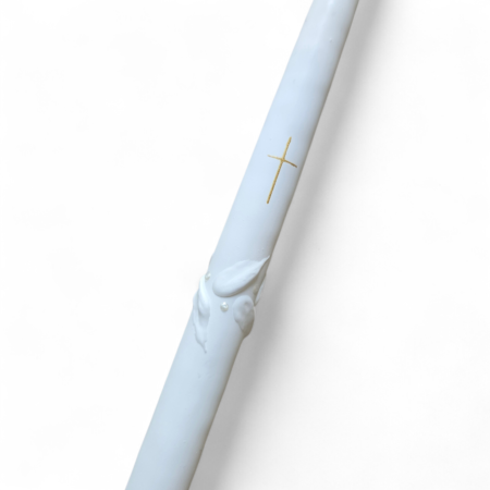 Krikšto žvakė su kryželiu 30cm – rankų darbo, pagaminta Lietuvoje.